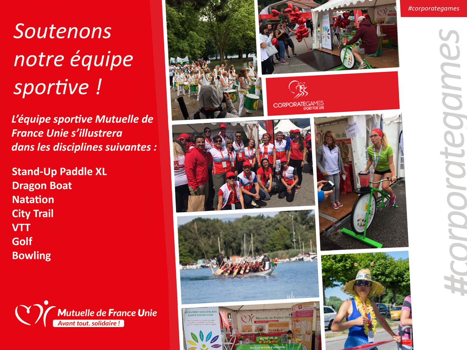 Venez encourager l'équipe de la Mutuelle de France Unie qui participera aux différentes épreuves sportives !