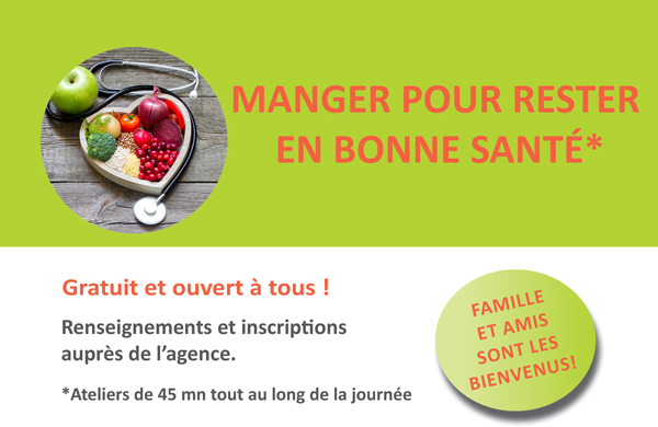 Gratuit et ouvert à tous, participez à l'animation "Manger pour rester en bonne santé" et apprenez les bons gestes pour maintenir votre capital santé !