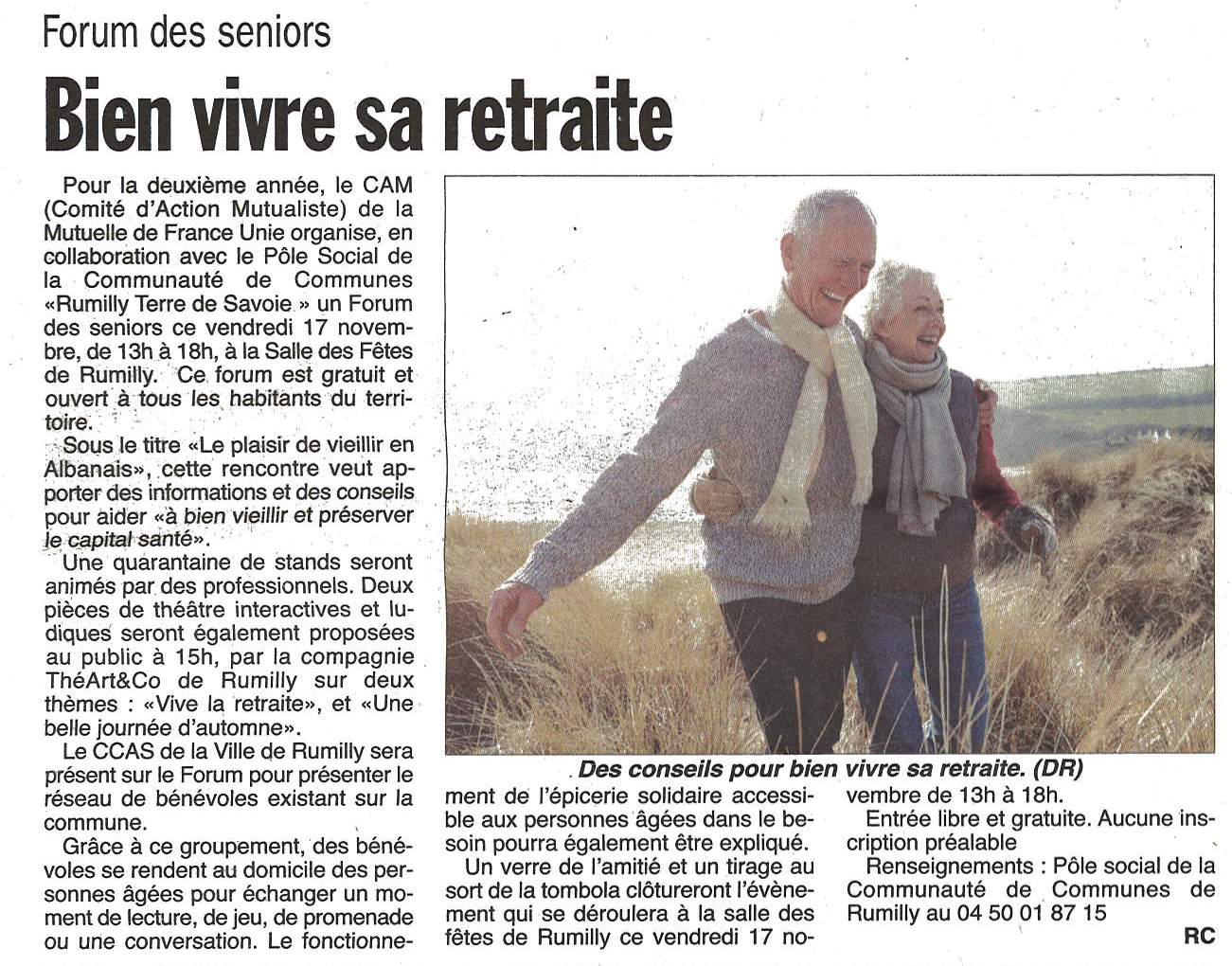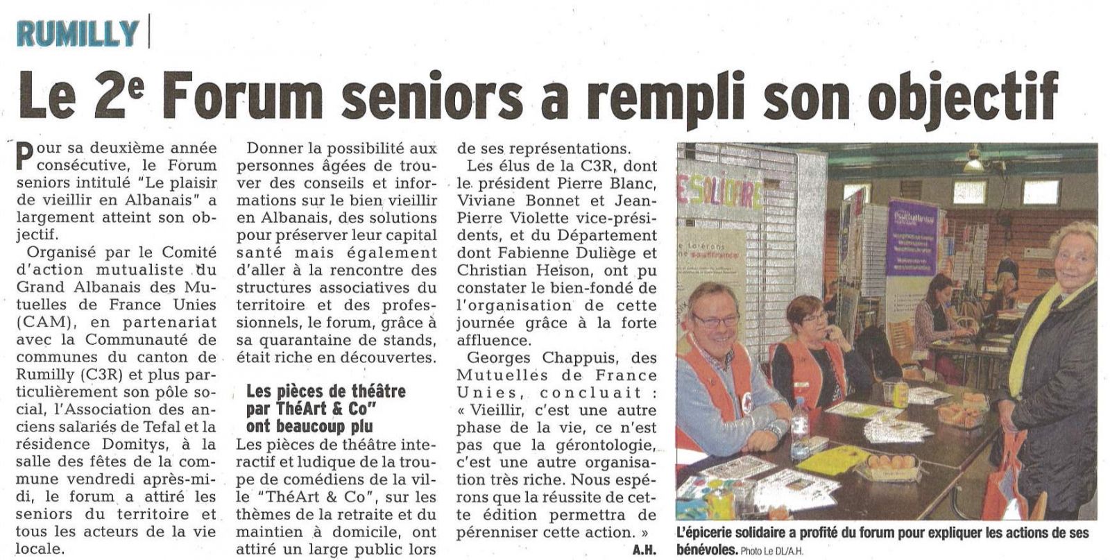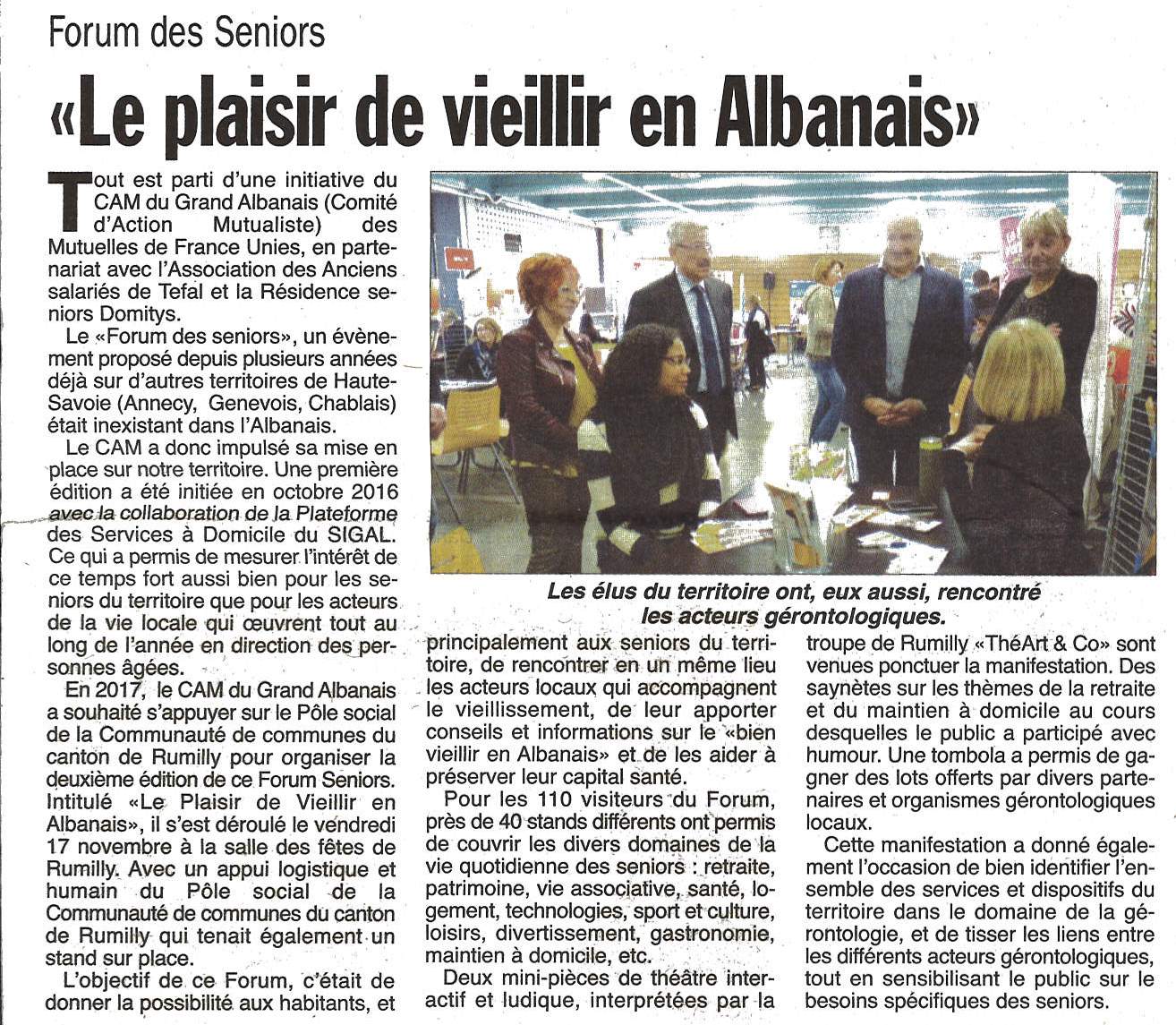 Le Comité d’Action Mutualiste du Grand Albanais organisait en collaboration avec la Mutuelle de France Unie et l'UMFMB un forum pour les séniors intitulé "Le Plaisir de vieillir en Albanais"